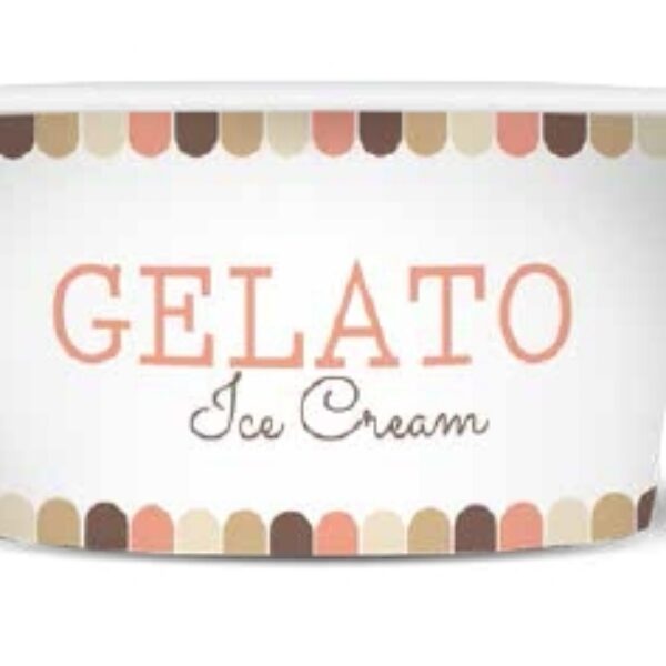 Kubek na lody wykonany z papieru nieprzemakalnego, posiadający dekoracyjny nadruk. Pojemność kubka 120 ml.Dedykowany do serwowania lodów lub deserów.