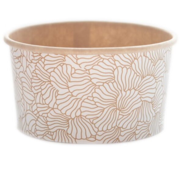 Kubek na lody wykonany z papieru nieprzemakalnego, biodegradowalnego i w 95% kompostowalnego, posiadający dekoracyjny nadruk. Dedykowany do serwowania lodów lub deserów.