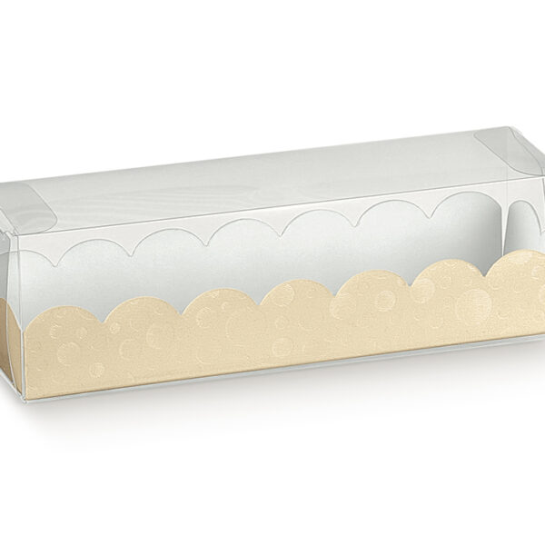 Pudełko na 2-3 makaroniki przeźroczysto-kremowe 8x5x5 cm opak.10 szt.