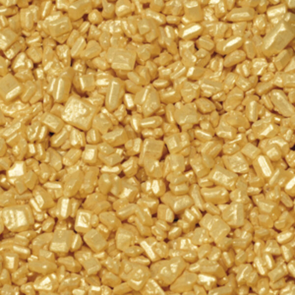 Cukrowa posypka włoskiej firmy Modecor o numerze 24424 w kształcie kryształków w kolorze złotym. Kryształki cukrowe to bardzo efektowny i uniwersalny produkt do dekoracji. Nadają się do zdobienia ciast, tortów, deserów, pierników, babeczek oraz muffinek, a także można nimi udekorować kieliszki i szklanki.