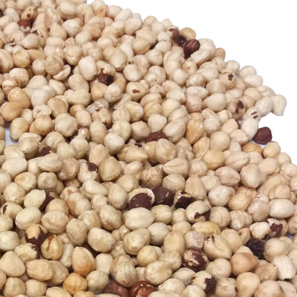 Orzechy laskowe całe, blanszowane poddane procesowi prażenia.Orzech laskowy jest owocem leszczyny. Ma jasnobrązową barwę i w zależności od gatunku różnorodny kształt.Owoce dojrzewają na przełomie września i października. Po zbiorach orzechy czyści się, sortuje i łuszczy. Następnie poddaje się je procesowi prażenia, który polega na ogrzewaniu surowca do temperatury od 100°C do 250°C.Proces prażenia zdecydowanie zmniejsza cierpkość orzechów laskowych i nadaje im odpowiedni smak, aromat i barwę. Prażenie zmniejsza też oleistość i podatność na jełczenie.Orzechy laskowe są silnym alergenem.Zastosowanie: składnik deserów, lodów, batoników, ciast, mieszanek bakaliowych, kremów orzechowych; tłoczy się z nich również olej.Zbiory: Turcja, Polska, Włochy – wrzesień, październik.Orzechy w opakowaniu 25 kg - średnica 11-13 mm.