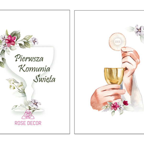 Dekoracja opłatkowa. Idealna do dekorowania komunijnych tortów i innych wypieków. Format A3.