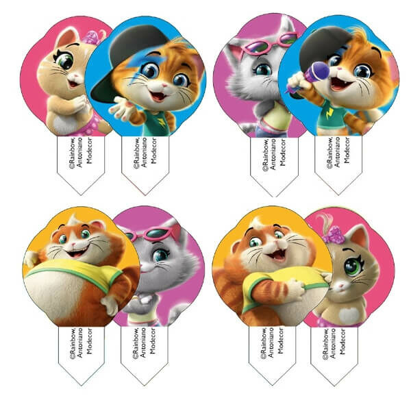 Oryginalna dekoracja w postaci opłatków włoskiej firmy Modecor o numerze 42061 z bohaterami bajki Cats. Świetnie sprawdzą się do dekorowania lodów, muffinek oraz dziecięcych deserów. Opakowanie zawiera 8 wzorów.