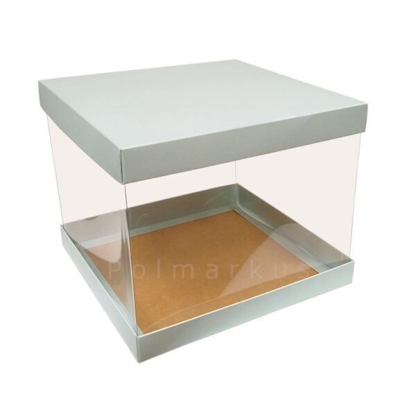 Eleganckie, błękitne pudełko na tort wykonane z plastiku i kartonu. Pudełko składa się z kartonowej podstawy, przezroczystej plastikowej osłony, oraz kartonowej pokrywki.Pudełko idealne do transportu tortów ślubnych lub tortów z dekoracjami na topie - zawartość widoczna nawet podczas transportu.Wymiary wnętrza pudełka:podstawa: 25x25 cm, wysokość: 21,5 cm, sugerowana wysokość użytkowa max: 20cm.Pudełka dostępne są w różnych kolorach i rozmiarach.Sprawdź całą pastelową serię opakowań i podkładów.