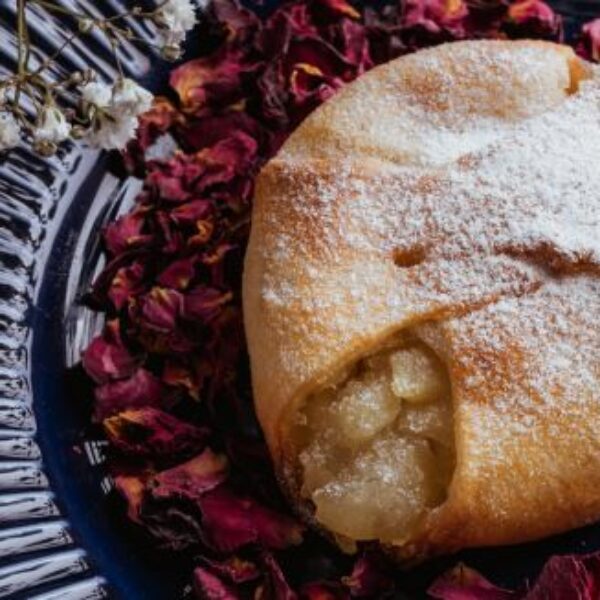 Koperty z jabłkami to kolejna, doskonała wariacja na temat połączenia prażonych jabłek z delikatnym i miękkim ciastem drożdżowym. Mogą zostać wykończone cukrem pudrem lub lukrem - w zależności od upodobań.Koperty z ciasta drożdżowego w kształcie kwadratu, zawartość jabłka prażonego 76,92%.W kartonie znajduje się 6 woreczków z ciastkami po 24 szt. każdy - do ułożenia na blasze o wymiarach 40/60 cm w 4 rzędach po 6 ciastek.Skład: jabłka prażone 76,92% (jabłka 91%, cukier, SKROBIA MODYFIKOWANA, kwas cytrynowy, kwas askorbinowy, przeciwutleniacz, sorbinian potasu, substancja konserwująca, aromat), ciasto drożdżowe ( mąka PSZENNA TYP 450, śmietana roślinna 30% drożdże, cukier, sól, MARGARYNA (tłuszcze i oleje roślinne, woda, kwas tłuszczowy, kwas cytrynowy), JAJKA). Sposób przygotowania:Rozgrzać piec do temp. 220 °CWstawić ciasteczka do pieca i zmniejszyć temp. do 195oC, piec ok. 25 min. - czas pieczenia zależy od pieca.Gorące ciasteczka udekorować pomadą lub cukrem pudrem - według uznania.