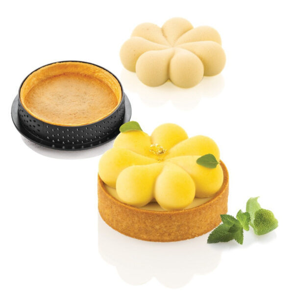 Forma silikonowa do tarty + 8 rantów śr. 70 mm h 20 mm KIT TARTE RING BLOSSOM
