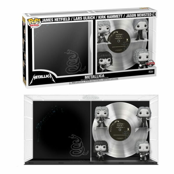 Figurki Funko POP! z serii POP! Albums, w której tradycyjne, kartonowe opakowanie zastąpiono pojemnikiem (etui) z grubego akrylu. Ta specjalna edycja zawiera cztery figurki członków zespołu Metallica. Dane: Wysokość figurki: 9 cm, Wymiary: 58 x 21 x 9 cm, Materiał: winyl, Dostarczana w pudełku kolekcjonerskim, Oficjalny produkt Metallica™, wyprodukowany przez Funko™. Figurki Funko POP! stanowią od niedawna fenomen na światowym rynku gadżetów związanych z grami, filmami, serialami czy komiksami. Ciekawy, uroczy oraz oryginalny design w połączeniu z coraz to większą ilością marek współpracujących z firmą sprawił, że cieszą się one niesłabnącą popularnością nie tylko wśród kolekcjonerów.