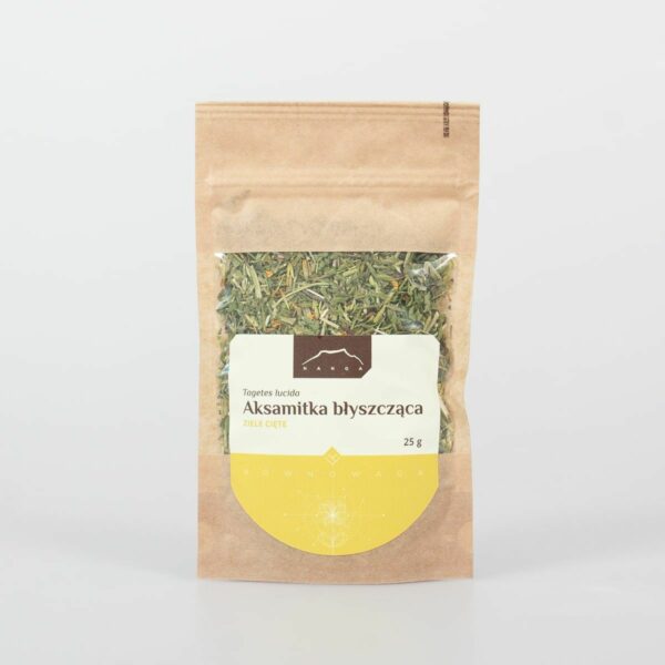 Aksamitka błyszcząca ziele ciete 25g NangaOpis produktu w najbliższym czasie będzie uzupełniony. Jeśli potrzebujecie Państwo otrzymać więcej informacji na temat tego zioła lub suplementu proszę pisać na adres mailowy bok@zielarski.info.