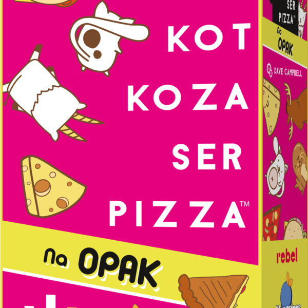 Powtarzaj, obserwuj i nie zostawaj z tyłu! Oprócz treningu spostrzegawczości i refleksu, gra oferuje też dodatkowe utrudnienia w postaci kart ze zwierzętami, które musimy naśladować. Jeszcze więcej śmiechu i zabawy!Buła, Kot, Koza, Ser, Pizza! Wykładaj karty w rytm tej niecodziennej wyliczanki, a gdy wypowiedziane słowo pasuje do obrazka, klepnij kartę ręką, nakrywając ją. Ten, kto będzie ostatni, zabiera wyłożone karty, a zwycięży gracz, który pozbył się wszystkich!Pamiętasz inny układ słów z tytułu? Tym gorzej dla Ciebie, bo jest już nieaktualny! Buła, Kot, Koza, Ser, Pizza - Na opak wywraca do góry nogami nie tylko wyliczankę, ale i same karty. Ich odwrócone wersje będą wymagały zupełnie innego reagowania. Uważaj i nie daj się zmylić, a zwycięstwo będzie na wyciągnięcie ręki!Zasady gryKażdy z graczy otrzymuje talię złożoną z identycznej liczby kart, których nie wolno im podglądać!Pierwsza osoba wykłada odkrytą kartę na środek, mówiąc "Buła". Gracz po jej lewej kładzie swoją odkrytą kartę na poprzednią, mówiąc "Kot".Wymienianie w kółko kolejnych słów z tytułu trwa dopóki karta, która właśnie została wyłożona, nie będzie pasował do wypowiadanego przez gracza słowa (np. wyłoży "Pizzę", mówiąc "Pizza"). W tym momencie wszyscy muszą jak najszybciej położyć swoje dłonie na środkowym stosie kart, a ostatni gracz, który to zrobi, bierze cały stos do siebie i dodaje do już posiadanych kart.Celem jest pozbycie się wszystkich swoich kart.Opanowane? To świetnie, bo czekają na Was jeszcze karty z Pandami, Łosiami i Lwami morskimi, które tylko czekają, żeby zburzyć Wasz rytm gry! Gdy pojawią się na stole, musicie jak najszybciej wykonać przypisane do nich gesty.Dlaczego pokochasz tę grę?Szybka, zabawna, szalona - taka właśnie jest ta karcianka. Przy stole czeka nas wiele emocji, presja będzie rosła wraz z tempem wykładania kart, a ten, kto poczuje się zbyt pewnie, może szybko stracić wypracowaną w pocie czoła przewagę.Buła, Kot, Koza, Ser, Pizza to gra niesamowicie uniwersalna. Malutka, więc nadaje się do zabrania w absolutnie każdą podróż. Prosta, więc nie wymaga długiego tłumaczenia. A do tego trwa krótko, a do samej zabawy nie potrzebujemy wiele miejsca. Wystarczy kawałek płaskiej powierzchni, który możemy wspólnie otoczyć.Zawartość pudełka:64 kartyinstrukcjaLiczba graczy: 2 - 8 osóbWiek: od 8 lat