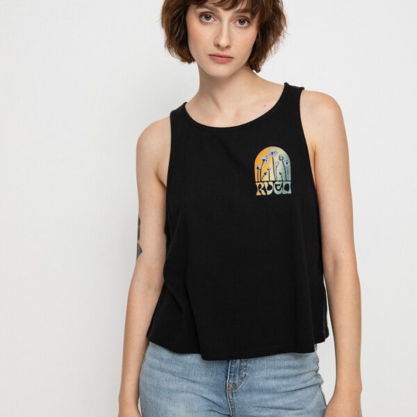 Materiał: 100% bawełna • Okrągły dekolt • Bez rękawków • Nadruk na piersi i plecach