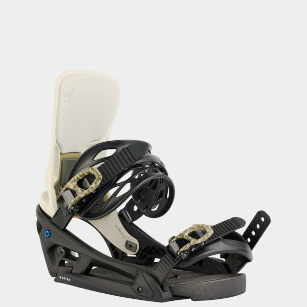 SYSTEM MOCOWANIA: EST® • PŁYTA PODSTAWY: wykonana z pojedynczego komponentu posiada konstrukcję w całości wykonaną z jednego materiału, który zapewnia zrównoważoną sztywność i dobre czucie podczas jazdy w każdym terenie, system mocowania Re:Flex znacznie zwiększa elastyczność, redukuje wagę konstrukcji oraz poprawia czucie deski. Połączenie kompozytowe nylonu z włóknem szklanym (45%) zapewnia niezwykle niską wagę • HI-BACK: warstwa Heel Hammock została wykonana ze wzmocnionej gumy, która precyzyjnie otula piętę buta i zapewnia błyskawiczną szybkość reakcji, system regulacji DialFLAD posiada pokrętło pozwalające precyzyjnie wyregulować kąt pochylenia łyżki. Technologia Living Hinge redukuje jej wielkość i wagę, a do tego pozwala na niezależną regulację pochylenia łyżki do przodu oraz stopnia jej rotacji • STRAP GÓRNY: wytrzymały górny strap Hammockstrap 2.0 posiada niski profil, który dobrze trzyma buta oraz zwiększa poziom kontroli deski • STRAP DOLNY: Supergrip Capstrap 2.0 jest w pełni odlewany ciśnieniowo by zredukować ilość odpadów, a dodatkowa warstwa gumy zapewnia lepsze trzymanie i dopasowanie do czubka buta • POMPKI: Smooth Glide są łatwe w obsłudze – posiadają aluminiowe dźwignie, stalową podstawę i poliwęglanowe rolki, dzięki czemu są trwałe i niezawodne • AMORTYZACJA: amortyzacja Re:Flex FullBED świetnie tłumi drgania pod stopą, zapewnia maksymalny komfort i minimalne zmęczenie, a do tego posiada konstrukcję „zapadki”, która pozwala na łatwe przykręcenie wiązań. Formuła żelu B3 została tak opracowana, że nie sztywnieje w niskich temperaturach oraz znosi wielokrotne uderzenia bez uszkodzeń • Legendarne połączenie wygody i wszechstronności all-terrain, tym razem w zaktualizowanej, lżejszej konstrukcji, która zapewnia większość szybkość reakcji wiązania • Warto doświadczyć wygody i sztywności męskich wiązań snowboardowych Burton Cartel X EST®. Te uniwersalne wiązania do każdego terenu oferują najbardziej zaawansowane rozwiązania, takie jak: strap górny Hammock oraz łyżka Heel Hammock, które zapewniają lepsze trzymanie i sztywność konstrukcji. Amortyzacja SensoryBED wyznacza najwyższe standardy czucia i kontroli, podczas gdy opcja zerowego pochylenia łyżki pozwala na bardziej swobodną jazdę. Wersja EST® jest kompatybilna wyłącznie z systemem mocowania Burton Channel® i gwarantuje najwyższy poziom flexa, czucia i precyzji ustawienia