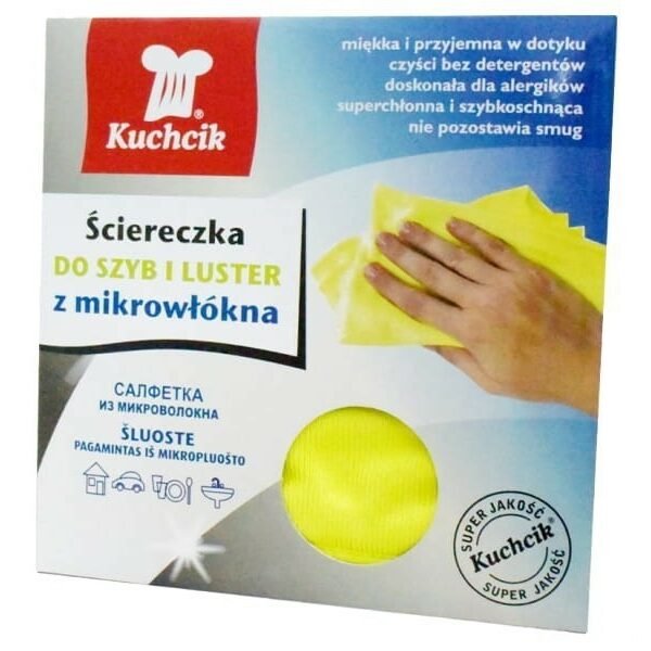 Kuchcik Ściereczka Do Mycia Szyb I Luster Mikrowłókna 30x30CMŚciereczka Glass & Window z mikrowłókna do czyszczenia i polerowania szklanych powierzchni. Miękka i przyjemna w dotyku ścierka, która czyści bez detergentów i idealnie nadaje się do mycia szyb, samochodu, czyszczenia zlewu lub polerowania.Cechy ściereczki Kuchcik: Wymiary: 30x30 cm Miękka i przyjemna w dotyku Czyści bez detergentów Doskonała dla alergików Superchłonna Szybkoschnąca Może być stosowana na sucho i mokro Wielokrotnego użytku - można ją prać w pralce Czyści szybko i skutecznie Nie rysuje powierzchni Do użycia w domu, garażu, gastronomii Nie pozostawia smug
