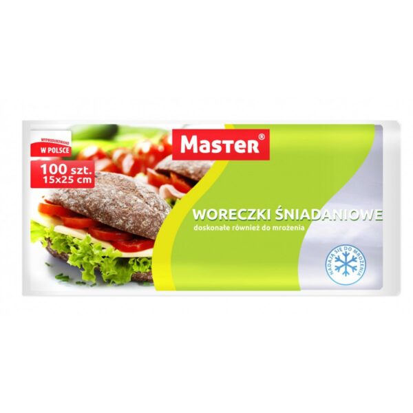 Master Woreczki Śniadaniowe 15x25CM 100 Sztuk praktyczne w szkole, w pracy i w podróżyzapewniają świeżość i wygodęutrzymują świeżość i aromat pakowanych produktówchronią przed wysuszaniem