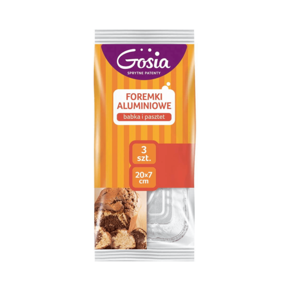 Gosia Foremki Aluminiowe 500ML 3 Sztuki Jesteś fanem pasztetu albo ciast? Najwyższy czas spróbować swoich sił i upiec je w domowym zaciszu, używając Foremek aluminiowych "babka i pasztet" marki Gosia! W naszej foremce upieczesz zarówno słodkie ciasto jak i coś wytrawnego, i to bez dodawania tłuszczu na powierzchnię formy. Produkt sprawdzi się nie tylko do pasztetów i babek, ale także do ciast drożdżowych, keksu czy czekoladowego brownie.Jeśli lubisz wcześniej przygotować potrawę i ją zamrozić, a potem wyjąć, kiedy najdzie Cię ochota - mamy dla Ciebie świetną wiadomość: foremkę babka pasztet możesz wstawić z zamrażarki bezpośrednio do piekarnika!Ta foremka to alternatywa dla formy metalowej czy silikonowej, która zaoszczędzi Ci zmywania.Jeśli chcesz, możesz bez zawahania podać wypieki na stół w tej formie. Ale gdybyś zechciał jednak wyjąć potrawę - nie będzie to stanowiło problemu, bo wystarczy rozciąć aluminium, aby wyjąć wypiek bez naruszania jego struktury.Gosia najczęściej piecze w tej foremce przepyszną babkę cytrynową.W opakowaniu znajdziesz 3 foremki aluminiowe.