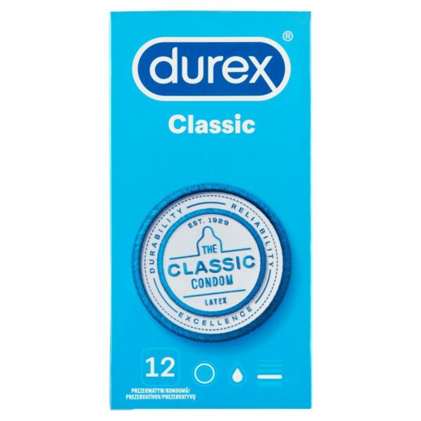 Durex Classic Prezerwatywy 12 SztukPrezerwatywy Durex Classic to popularny model znanej marki działającej na rynku od 1929 roku. To klasyczny, sprawdzony wybór dający maksimum możliwej ochrony i komfortu użytkowania. Dla waszej wygody i satysfakcji prezerwatywy pokryte są silikonowym lubrykantem zapewniającym lepsze nawilżenie. Kształt easy-on ułatwia zakladanie, nawet wtedy, kiedy napięcie podczas randki sięga zenitu. Pamiętaj, że skuteczność prezerwatyw Durex zależy od prawidłowego użycia, a żadna antykoncepcja nie chroni w 100% przed ciążą czy chorobami przenoszonymi drogą płciową. Dowiedz się więcej i zapoznaj się z informacjami dołączonymi do opakowania, szczególnie jeśli uprawiasz seks analny lub oralny.Klasyczne prezerwatywy Durex - uniwersalny i popularny wybór, model znany na rynku od 1929 roku.Testowane dermatologicznie - wykonane z wysokiej jakości lateksu, każda seria testowana jest elektronicznie dla najwyższej jakości ochrony.Standardowy rozmiar prezerwatywy - uniwersalny, bez konieczności dobierania do rozmiaru penisa (szerokość nominalna 56 mm).Łatwe zakładanie - specjalne opakowanie z logo wskazuje spód i ułatwia szybkie i bezproblemowe otwieranie i dopasowanie.Bezpieczny seks - prezerwatywa to najskuteczniejszy dostępny sposób ochrony przed chorobami przenoszonymi drogą płciową i wirusem HIV.Przed użyciem: Sprawdź datę ważności na opakowaniu. Jeśli folijka, w której znajduje się prezerwatywa jest w widoczny sposób uszkodzona, należy ją wyrzucić i użyć nowej prezerwatywy z nieuszkodzonego opakowania. Załóż prezerwatywę, zanim penis dotknie drugiej osoby. Pomaga to zapobiec ciąży i możliwości zarażenia się chorobami przenoszonymi drogą płciową podczas seksu waginalnego, analnego i oralnego.Instrukcja używania: Rozerwij opakowanie od ząbkowanej krawędzi. Obchodź się ostrożnie z prezerwatywą, gdyż może zostać uszkodzona paznokciami lub ostrymi przedmiotami.Upewnij się, że zrolowana krawędź jest po zewnętrznej stronie. Ściśnij końcówkę i umieść prezerwatywę na czubku członka w stanie wzwodu.Rozwiń prezerwatywę na całej długości członka. Zatrzymaj się i sprawdź, czy prezerwatywa nie ześlizguje się lub nie przylega zbyt ściśle do członka, ponieważ może to doprowadzić do jej uszkodzenia. Należy zdjąć prezerwatywę zaraz po wytrysku. Mocno przytrzymaj prezerwatywę u podstawy członka przed jego wyciągnięciem.Wrzuć folijkę i zużytą prezerwatywę do kosza. Nie wyrzucaj jej do toalety.