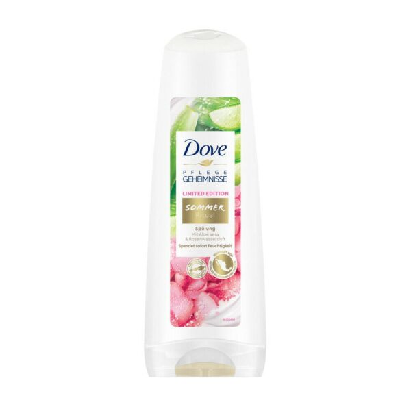 Dove Sommer Ritual Odżywka do Włosów 200ML Odżwka z dodatkiem aloesu i wodą różaną natychmiastowo odżywia zniszczone włosy, wysuszone przez promienie słoneczne.Odżywka Dove Care Secrets odżywia i chroni z aloesem i wodą różanąOdżywka natychmiastowo nawilża zniszczone latem włosySzczególnie nadaje się na letnie miesiąceZainspirowana rytuałem piękna meksykańskich kobiet