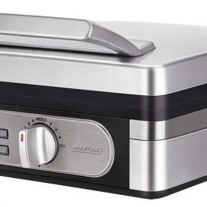 Trwałe urządzenie ze stali chromowo-niklowej, z dużą powierzchnią grillową, płyta grilowa ryflowana i gładka. Płyty grillowe wykonane z żeliwa dla optymalnej wymiany ciepła, termostat regulowany w zakresie od 50°C do 300°C, lampka kontrolna nagrzania, lampka kontrolna włączenia/wyłączenia, miska do zbierania tłuszczu. Idealny do przygotowania przekąsek, podgrzewania pity, grillowania, ma wszechstronne zastosowanie.Wymiary płyty do grilowania:Górna (ryflowana): szer. 335 x gł. 220 mm.Dolna (gładka): szer. 335 x gł. 230 mm.