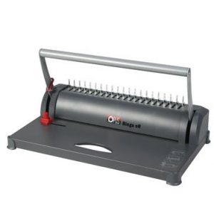 Termobindownica TB 200 Termobindownica jest urządzeniem służącym do tworzenia profesjonalnie wyglądających, trwałych i estetycznych dokumentów. Działanie termobindownicy polega na łączeniu grzbietu dokumentów za pomocą paska kleju termokurczliwego. Proces termobindowania składa się z kilku kroków: Wkładanie dokumentów do termobindownicy: Wyrównane dokumenty umieszczone w termookładce są układane w podajniku. Podgrzewanie: Grzbiet dokumentów w termookładce jest nagrzewany przez specjalny element grzewczy. Łączenie: Gdy klej jest rozgrzany, krawędź dokumentów zostaje przylepiona. Chłodzenie: Po zakończeniu procesu łączenia, dokumenty należy schłodzić na dodatkowej półce, dzięki czemu oprawa staje się twarda i trwała. Efektem końcowym jest trwałe połaczenie pomiędzy kartkami oprawianych dokumentów, które jest odporne na rozdzieranie, rozrywanie i wilgoć. Termobindownice są często używane do tworzenia raportów, broszur, książek, katalogów i innych dokumentów, które muszą być trwałe i estetyczne. Termobindownica TB 200 łatwa w obsłudze termobindownica wysuwana podpórka do chłodzenia dokumentów panel z diodami LED sygnalizator gotowości do pracy sygnalizator zakończenia procesu oprawy automatyczne wyłączanie po 90 minutach od zakończenia termobindowania oprawia do 200 kartek w maksymalnie 60 sekund wymiary: 420x101x163 mm Pod wpływem ciepła, klej zawarty w pasku łączącym okładkę przednią i tylną termookładki, rozpuszcza się i łączy ze sobą oprawiane dokumenty