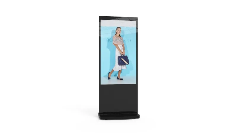 Totem Cyfrowy Slim to eleganckie rozwiązanie do wyświetlania treści, zaprojektowane z myślą o estetyce i stabilności.