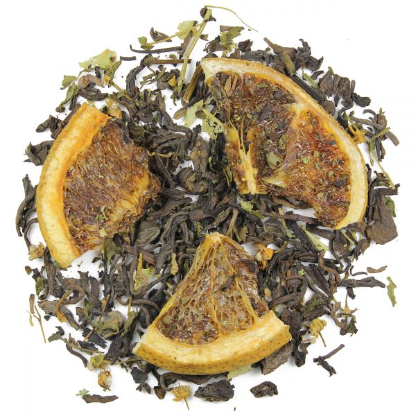 Pachnąca cytrusami, relaksująca i odchudzająca mieszanka oparta o czerwoną herbatę Pu-erh. W jej barwnym suszu ukryto liście melisy oraz lipy, a także dorodne i soczyste plasterki grejpfruta. W rezultacie udało się stworzyć kompozycję rodzącą napar o nietuzinkowej, czerwonej barwie i bardzo przyjemnym smaku okraszonym dominującymi akcentami lipowymi i grejpfrutowymi. Kubek tej mieszanki odpręża, poprawia nastrój i pozytywnie wpływa na metabolizm. Jest to niewątpliwie idealna kompozycja dla tych, którym nie odpowiada naturalny smak herbaty Pu-erh, a którzy nie chcieliby rezygnować z jej zbawiennych właściwości. Nie można również zignorować wręcz bajecznych właściwości medycznych jakie herbata ta posiada. Niezwykły wpływ na ludzki metabolizm badali przez dłuższy czas Francuzi dochodząc do interesujących wniosków. Udowodniono między innymi, że 9 na 10 pacjentów regularnie spożywających Pu-erh zdołało stracić na wadze od ponad 3 do niemal 11 kg. Amerykanie nadali więc tej odmianie tytuł słynnego zabójcy tłuszczu.
