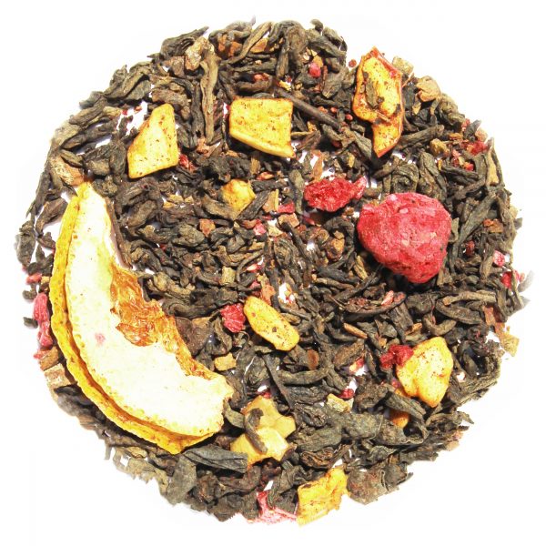 Ciekawa kompozycja, która przypadnie do gustu tym, którzy nie przepadają za naturalnym smakiem i zapachem herbaty Pu-erh. Intensywny aromat pomarańczy i malin okraszony akcentami cynamonu w pełni dominuje nad świeżo przygotowanym naparem. Warto pamiętać, że nie można również zignorować wręcz bajecznych właściwości medycznych jakie herbata Pu-erh posiada. Niezwykły wpływ na ludzki metabolizm badali przez dłuższy czas Francuzi dochodząc do interesujących wniosków. Udowodniono między innymi, że 9 na 10 pacjentów regularnie spożywających Pu-erh zdołało stracić na wadze od ponad 3 do niemal 11 kg. Amerykanie nadali więc tej odmianie tytuł słynnego zabójcy tłuszczu.