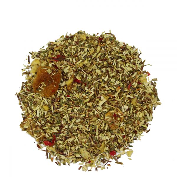 Zielony Rooibos jest herbatą z niefermentowanych listków czerwonokrzewu afrykańskiego o subtelnym, odświeżającym smaku i aromacie słodkich ziół i kwiatów. Jej wyjątkowość polega nie tylko na zupełnym braku teiny przez co napar przyrządzany na jej podstawiemoże być pity również przez najmłodszych, ale także na sposobie jej spożywania. Herbatę z niefermentowanego czerwonokrzewu można pić zarówno na gorąco jak i na zimno! W obu wypadkach napój ten dostarczy nam ciekawych wrażeń smakowych i doskonale zaspokoi pragnienie. W towarzystwie pysznego, słodkiego mango oraz egzotycznej marakui mieszanka nabiera tropikalnego charakteru! Te dodatki sprawią, że po zaparzeniu przeniesiemy się na tropikalną wyspę nie wychodząc z domu. Miłym akcentem jest tu również kwiat granatu, który nie tylko pięknie wygląda, ale również pozytywie wpłynie na nasze serce, wesprze nasz metabolizm i pomoże w utrzymaniu prawidłowego poziomu glukozy we krwi. Tak więc jeśli lubisz łączyć przyjemne z pożytecznym, ta mieszanka jest dla Ciebie!