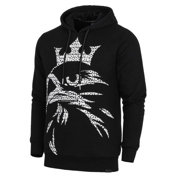 Bluza z kapturem marki PatrioticMateriał: 90% bawełna, 10% poliesterGramatura: 350gWyprodukowano: w PolsceCechy produktu:z przodu na środku duży nadrukwygodne kieszenie przedniekaptur ze ściągaczamiwykończenie firmowymi metkami