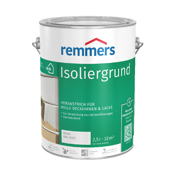 REMMERS - ISOLIERGRUND - 5LSpecjalna wodna powłoka pod jasne farby i lakiery. Występuje w kolorze BIAŁYM; NIE ZASTĘPUJE IMPREGNATÓW! W przypadku wymagających i mało odpornych gatunków drewna (szczególnie iglastego na otwartej przestrzeni), zalecamy przed nałożeniem ISOLIERGRUND dodatkową impregnację za pomocą Remmers Holzschutz-Grund.Właściwości:Zapobiega żółtym przebarwieniomodporna na warunki atmosferycnzereguluje wilgotnośćszybko schnieprodukt wodnysilnie kryjący mat.Obszary stosowania:balustrady balkonowewiaty samochodowepłyty sufitowedeski elewacyjneokna/okiennicealtanypalisadypergoledrzwiboazeria wewnętrznapłoty.Zużycie:5L wystarczy przy jednej warstwie na około 67 m²jako powłoka wstępna: 2 x 70-80 ml/m²jako powłoka końcowa: 3 x 70-80 ml/m².