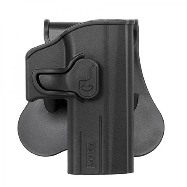 DOSKONAŁY I WYTRZYMAŁY MATERIAŁ· Wykonana z wysokiej jakości polimerów· Odporna na ekstremalne temperaturyMECHANIZM ZABEZPIECZAJĄCY· Kabura posiada przycisk zabezpieczający, który blokuje spust. Konstrukcja ta zapewnia szybkie wyciągnięcie broni jak i jej chowanie, oraz zapobiega przypadkowemu wypadnięciu pistoletu.W PEŁNI REGULOWANA· Obracana o 360 stopni · Łatwa regulacja za pomocą dołączonego klucza imbusowegoPROSTOTA I KOMFORT· Wygodna miękka silikonowa płetwa pasująca do każdego pasaOPCJE DODATKOWE· Do kabury można dokupić szlufkę do pasa sportowego, mocowanie MOLLE , panel udowy lub szelki.Kompatybilność: ASG Seria P-07/P-09
