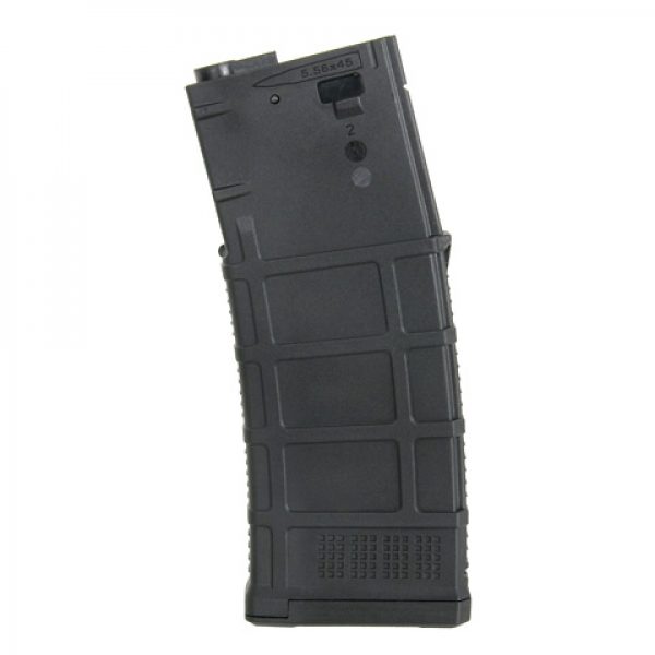 Magazynek posiada funkcję przełączania pomiędzy trybem 30-kulek Real-Cap a 130-kulek Mid-Cap. Wewnętrzny przycisk umożliwia łatwą zmianę między średnią pojemnością a rzeczywistą pojemnością magazynka karabinowego. Jednoczęściowa skorupa magazynka zapewnia większą wytrzymałość. Wykonana z polimeru wzmocnionego włóknem szklanym. Specjalna konstrukcja donośnika gwarantuje, że po ostatnim strzele nie pozostanie w magazynku żadna kulka BB. Kompatybilny z większością replik AEG na rynku, w tym Ares, Cyma, APS, G&G, E&L itp.