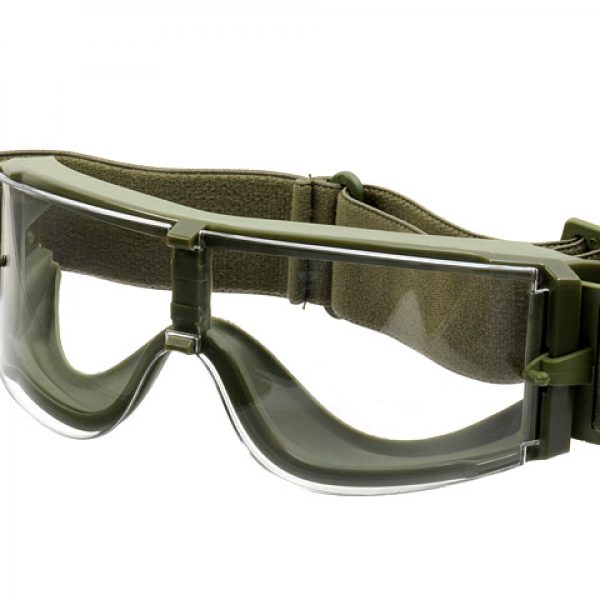 Gogle z wizjerem z poliwęglanu (produkt przeszedł test ANSI Z80.3) i ramką wykonaną z odpornego tworzywa TPU.UWAGA: Gogle zapewniają ochronę przed skutkami, które mogą być spowodowane przez kulki airsoftowe. Mimo że są one zgodne i przetestowane z normami bezpieczeństwa, nie są niezniszalne. Producent ani sprzedawca nie ponosi odpowiedzialności za uszkodzenia produktu powstałe w związku z wykorzystywaniem do w trakcie gier taktycznych/wojennych/ASG. Producent ani sprzedawca nie ponosi odpowiedzialności za ewentualne szkody na osobie lub w mieniu powstałe w związku z wykorzystaniem produktu podczas gier taktycznych/wojennych/ASG.UWAGA! Możliwość noszenia okularów korekcyjnych pod goglami.