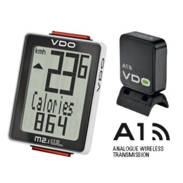 VDO licznik M2.1 ATSFUNKCJE:Transmisja bezprzewodowa ATSAutomatyczny start/stop Montaż bez użycia narzędzi Tekstowy wyświetlacz Wodoodporny Jeden rowerPrędkość aktualna Czas jazdyDystans wycieczkiCałkowity dystansPrędkość średniaPrędkość maksymalnaCałkowity czas jazdyPorównanie prędkości aktualnej do średniejLicznik spalonych kaloriiLicznik całkowitych spalonych kaloriiZegarWskaźnik wyczerpania bateriiPamięć ustawień oraz danych podczas wymiany baterii