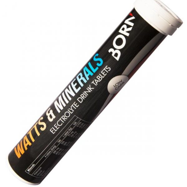 Born Watts & Minerals tabletki nawadniająceBORN WATTS&MINERALS to tabletki musujące, które rozpuszczone w wodzie zapewniają optymalne nawodnienie organizmu, dzięki dostarczeniu do organizmu podstawowych elektrolitów takich jak: magnez, sód, potas, wapń i chlor. Zawarte w produkcie składniki mineralne i witaminy zapewniają zwiększoną wydajność w przekształcaniu ADP do ATP dzięki czemu zwiększa się też wydolność organizmu. Produkt ten jest szczególnie polecany w sportach wytrzymałościowych.SMAK Pomarańcza/Cytryna WYKORZYSTANIE Podczas wysiłku WYDAJNOŚĆ 4 g (to 1 bidon gotowego napoju)Zawiera niezbędne minerały do nawadnianiaTabletka musującaZawiera WATTS UP®: naturalny składnikWspiera aerobową i beztlenową mocDziałania udowodnione kliniczniePrzeszedł testy antydopingowe (NZVT)Bezpośrednie działanie na mitochondriaOdpowiednie do sportów wytrzymałościowychWięcej wydajności w watach (do + 5%!)Składniki: Regulator kwasowości (kwas cytrynowy),sorbitol, wodorowęglan sodu, ekstrakt z owoców cytrusowych, węglan magnezu, chlorek potasu, aromaty, chlorek sodu, stężony proszek buraczany, glikol polietylenowy, środek słodzący (sukraloza); Barwnik (ryboflawiny).