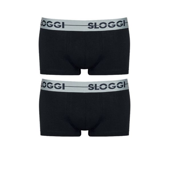 2 Pack majtek męskich Hipster - z krótką nogawką. Model wykonany z przyjemnej dla ciała bawełny, która zapewnia komfort noszenia przez cały dzień. Model z szarą, szeroką, miękką gumką w pasie z logo Sloggi. W opakowaniu dwie sztuki w kolorze czarnym.Skład:96% Bawełna, 4% Elastan.