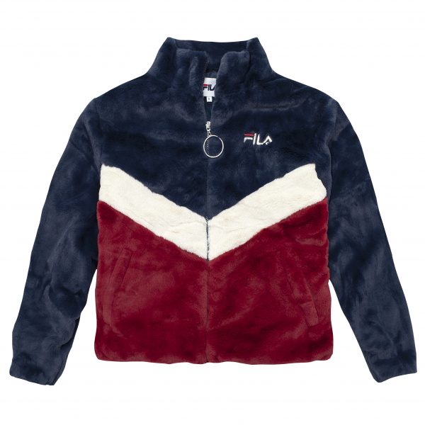 Kurtka FILA CHARMAINE wykonana z niezwykle przyjemnego w dotyku pluszu. Zestawienie kolorów w sportowym stylu marki. Zapinana na zamek. Po bokach dwie kieszenie. Na plecach logo marki.