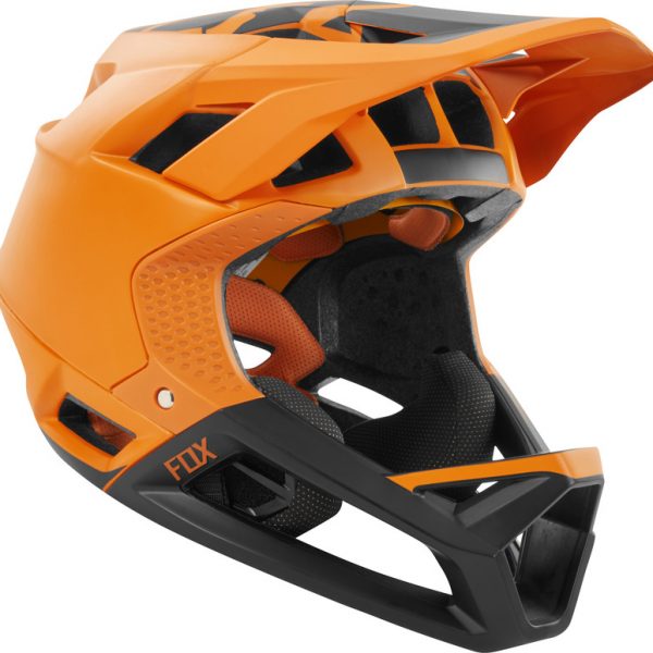 FOX Proframe Matte Atomic Orange kaskNasz najlżejszy kask downhillowy czyli 750g dla rozmiaru M!Szczęka jest zintegrowana ze skorupą kasku dla największego bezpieczeństwaMocno oddychająca wyściółka perfekcyjnie wchłania pot i ma właściwości przeciwbakteryjne25 wloty Big Bore czynią kask Proframe jednym z najlżejszych i najbardziej oddychających kasków do DHDaszek jest zaprojektowany tak, by jak najwięcej powietrza wpadało do wlotów Big BoreZapięcie Fidlock® SNAP gwarantuje szybkie zapięcie i odpięcie zachowując też najwyższy poziom bezpieczeństwaSystem MIPS™ (Multiple Impact Protection System) gwarantuje redukcję wstrząsów oddziałujących na mózg w razie upadkuPianka Varizorb™ EPS o podwójnej gęstości zapewnia wzmocnioną ochronę