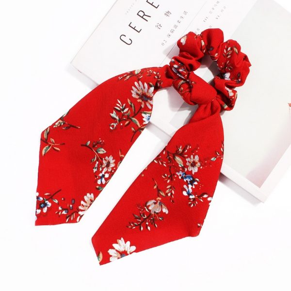Gumka do włosów apaszka długa czerwień kwiaty