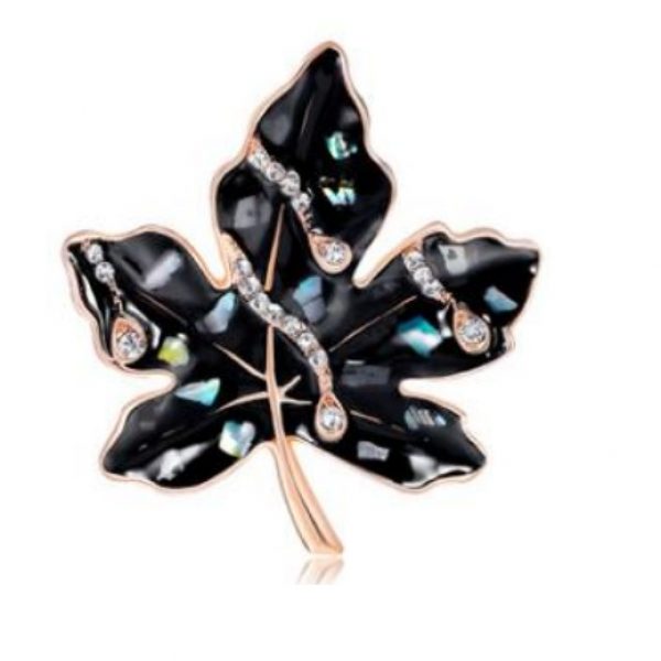 Broszka dżetowa listek klonu