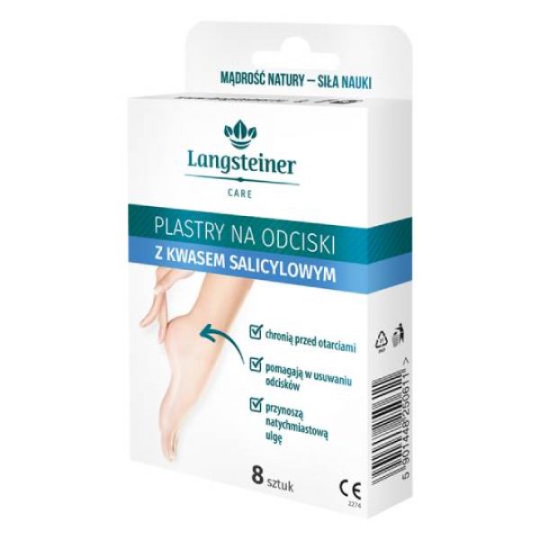 Plaster na odciski, który "trzyma" ok. 24 godziny.Skład:Kwas salicylowy (Ph. Eur.) 22,0 mg, Kwas mlekowy (Ph.Eur.) 0,671 mg. Substancję pomocniczą-Lanolinę, Substancje bazowe: wosk pszczeli, korzeń fiołka, chlorofil.Dawkowanie:Na czystą i suchą stopę nałożyć plaster tak, aby substancja czynna przylegała do odcisku. Stosować plastry do momentu aż odcisk zostanie usunięty. Każdy plaster należy nałożyć na ok. 24 godziny. Po zakończeniu kuracji można usunąć środkową część odcisku stosując ciepłą kąpiel stóp z użyciem soli i mydła. Jeżeli w trakcie zabiegów skóra stanie się wrażliwa i pojawi się zaczerwienienie, poczekać z nałożeniem kolejnych plastrów.Przeciwskazania:Nie nakładać plastra na okolice odcisku, jeżeli skóra jest podrażniona lub występują stany zapalne. Nie stosować w przypadku uczulenia na kwas salicylowy i inne składniki produktu. Unikać stosowania w ciąży i w trakcie karmienia piersią. Zaprzestać stosowania i zdjąć plastry w przypadku mocnego podrażnienia i odczuwalnych dolegliwości (pieczenie, zaczerwienienie) lub nadwrażliwości na produkt. Osoby chore na cukrzycę – stosować po konsultacji z lekarzem.UWAGA: produkt dostępny w różnych wersjach graficznych, wysyłanych losowo!