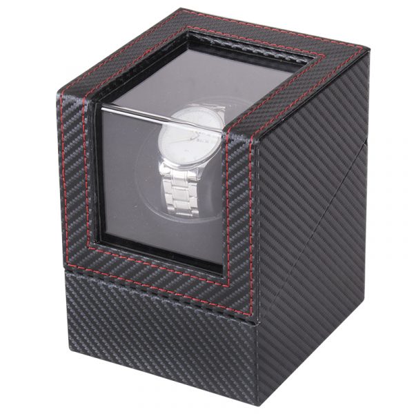 Elegancki Rotomat na zegarek mechaniczny z automatycznym naciągiemWystarczy uruchomić rotator aby obracał zegarkiem.Cykl obrotów to 2 minuty w jedną stronę, pauza - 6 minut, a następnie 2 minuty w drugą stronę, pauza - 6 minut. Cykle te będą się powtarzać aż do wyłączenia rotomatu.Cechy produktu:- niewielkie gabaryty- wbudowany, niemal bezgłośny silnik elektryczny- wnętrze wyścielone miękkim materiałem- szybka prezentująca zegarek- eleganckie pokrycie z ekoskóry imitującej karbon- wspaniały na podróż dzięki możliwości użycia bateriiWymiary:12 cm x 13 cm x 16 cm