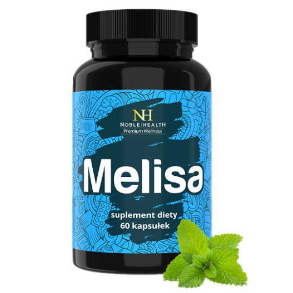 Suplement diety Noble Health melisa zawiera ekstrakt z liści melisy lekarskiej. W medycynie ludowej melisę stosuje się na uspokojenie oraz w problemach z zasypianiem. Preparat odpowiedni dla osób narażonych na stres i żyjących w ciągłym napięciu. Opakowanie wystarcza na miesięczną suplementację. Zaleca się stosować 2 kapsułki dziennie, popijając dużą ilością wody. Zawartość opakowania 60 kapsułkę.NOBLE HEALTH melisa - skład:Ekstrakt z liści melisy lekarskiej (Melissa officinalis), żelatyna. Składniki: 2 kapsułki: Ekstrakt z liści melisy lekarskiej 500 mg Nie podano ZDS (zalecanego dziennego spożycia) dla podanych substancji.Przeciwwskazania:Nadwrażliwość na którykolwiek ze składników preparatu. W okresie ciąży i karmienia piersią przed zastosowaniem należy skonsultować się z lekarzem lub farmaceutą.Zalecane spożycie:2 kapsułki dziennie, popijając szklanką wody.Ważne informacje:Nie należy przekraczać zalecanej porcji do spożycia w ciągu dnia. Suplement diety nie może być stosowany jako substytut zróżnicowanej diety ani aktywnego trybu życia. Utrzymanie prawidłowego stanu zdrowia wymaga zrównoważonego i zróżnicowanego odżywiania i prowadzenia zdrowego trybu życia. Istnieje wiele czynników ryzyka choroby. Zmiana jednego z tych czynników ryzyka może wywierać korzystny wpływ lub nie wywierać go. Przechowywać w sposób niedostępny dla małych dzieci w temperaturze pokojowej.Pojemność opakowania:60 kapsułek.Producent:Noble Health Sp. z o.o. ul. Warszawska 62, Wielogóra26-660 Jedlińsk