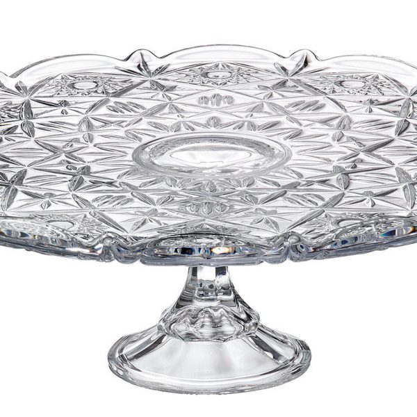 Bogato zdobiona patera z kolekcji Bohemia Miranda, na stabilnej nóżce to wyjątkowy sposób na podanie ciast i wszelkiego rodzaju domowych wypieków. Naczynie będzie ciekawą ozdobą zastawy stołowej. Piękne wzór przyciąga uwagę, a wykonanie z grubego szkła sprawia, że patera jest niezwykle funkcjonalna.