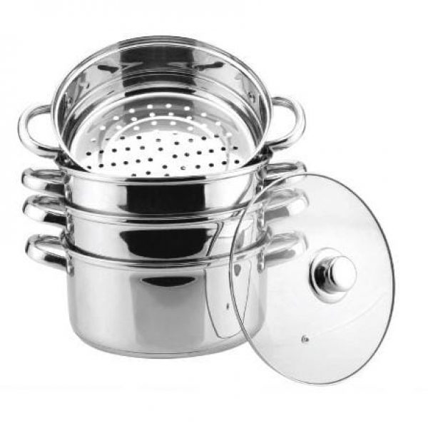 Dla wszystkich wielbicieli zdrowego odżywiania polecamy zestaw do gotowania na parze, wyprodukowany z wysokiej jakości stali nierdzewnej. Komplet ten to 2,5 l garnek, 3 wkłady do gotowania na parze oraz pokrywa szklana. Zestaw ten przeznaczony jest do używania w kuchenkach indukcyjnych. KING Hoff to gwarancja wysokiej jakości produktów dla gospodarstwa domowego, modny i nowoczesny design polecany dla każdej kuchni. Garnek do gotowania na parze ze stali nierdzewnej to wszechstronny produkt dla każdego, kto pragnie gotować zdrowo i przyrządzać dietetyczne, lekkostrawne i odżywcze potrawy. To również doskonały sposób na oszczędności, za pomocą pary przyrządzać można bowiem cały obiad w jednym garnku. Gotowanie tym sposobem jest też szybsze. Stalowy garnek na parę dzięki idealnie gładkiej powierzchni, w którą nie wnikają drobnoustroje, jest niezwykle higieniczny. Sprawia to, że nadaje się do przygotowywania potraw dla każdego, w tym alergików i niemowląt. Jego wielkim atutem jest też bardzo łatwe czyszczenie – zwykle wystarczy delikatne przetarcie i przepłukanie wszystkich części. Aby przygotować dowolne danie w garnku do gotowania na parze, wystarczy nalać do niego wody, a na wkładzie z sitem umieścić produkty (warzywa, mięso, ryby, kaszę, ryż). Przykryty pokrywą garnek następnie umieszcza się na kuchence (gazowej, elektrycznej lub indukcyjnej), a posiłek przygotowuje się w zasadzie sam. Sprawia to, że tego typu urządzenie docenią osoby zapracowane, którym brakuje czasu na przyrządzanie zdrowych posiłków