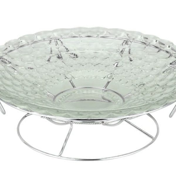 Bogato zdobiona patera na owoce to naczynie, które świetnie sprawdzi się w każdym domu, zwłaszcza podczas przyjmowania gości, których możemy poczęstować owocami lub słodkimi wypiekami. Patera wykonana jest ze szkła i ze stali galwanicznej, co sprawia, że wyróżnia ją wysoka jakość. Naczynie możemy myć w zmywarce.