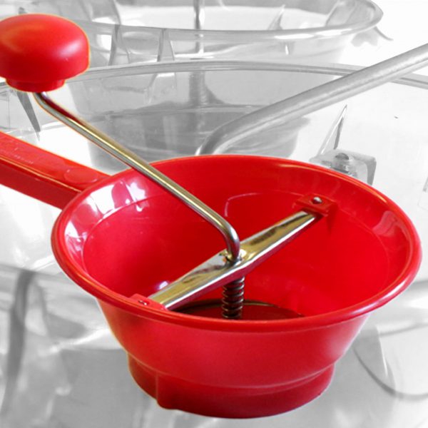 Przecierak plastikowy do warzyw czerwony 20 cm + 3 sita