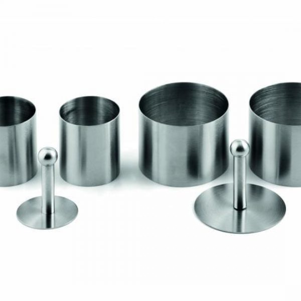 Zestaw do formowania potraw, przygotowywania warstwowych sałatek, przystawek oraz deserów.Przy pomocy pierścieni podane dania będą prezentowały się wykwintnie i smakowicie. Można nimi formować ryż, ziemniaki, tatara, a także desery lub sałatki. Przydadzą się również przy wycinaniu krążków na pierogi czy ciastka. W zestawie znajdują się 4 pierścienie ( 2 o średnicy 4,7 cm, 2 o średnicy 7,3 cm) o wysokości 6 cm oraz 2 tłoki. Pierścienie i tłoki są wykonane ze stali nierdzewnej 18/10. Wymiary pierścieni to: wysokość 6 cm średnica 4,7 cm i 7,3 cm Główne zalety:wykonane ze stali nierdzewnej w zestawie 4 formery i dwa tłoki nadadzą potrawom niezwykłego wyglądu 2 lata gwarancji