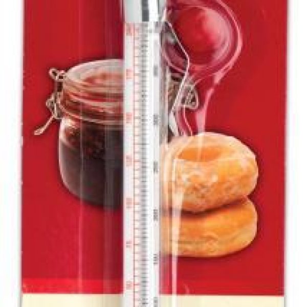 Podczas przygotowywania smażonych słodkości - faworków, pączków itp. niezwykle ważna jest odpowiednia temperatura smażenia. Nie może być ona za wysoka - powoduje zbyt szybkie przypiekanie na zewnątrz, a środek ciasta pozostaje surowy. Jeśli temperatura tłuszczu jest za niska to żywność nasiąka tłuszczem. Niezbędny wtedy staje się odpowiedni termometr cukierniczy. Przy pomocy termometru można także we właściwy sposób (przy odpowiednej temperaturze) przygotować domowe dżemy i konfitury. Termometr wykonany jest ze szkła wytrzymałego na wysokie temperatury. Można go zawiesić na rancie naczynia, w którym smażymy, należy go stopniowo ogrzewać, nie umieszczać w naczyniu z rozgrzaną zawartością. Posiada skalę w Celsjuszach zakres 25°C-205°C oraz Fahrenheitach 77°C-400°C. Optymalna temperatura smażenia w głębokim tłuszczu wynosi 176°C-187°C (350°F-370°F), natomiast podczas gotowania przetworów, należy utrzymaywać temperaturę 104°C (219°F).