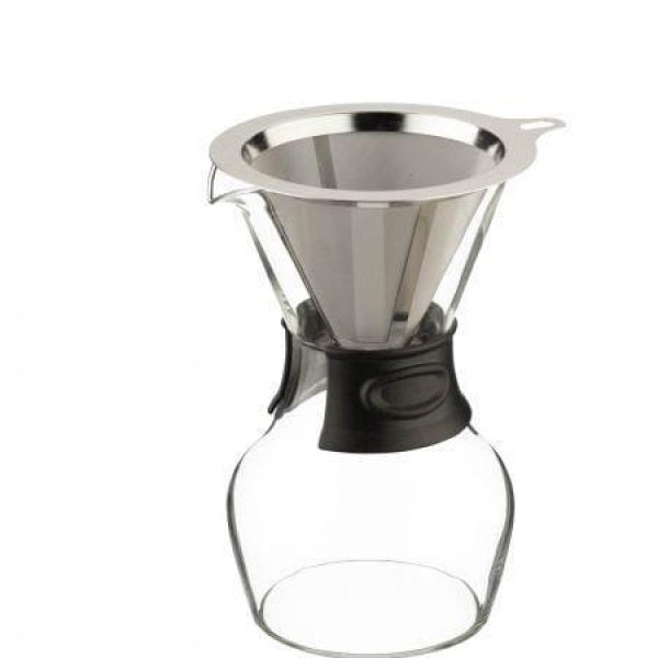 Przelewowy zaparzacz do kawy, z rodzaju Chemex. Jest to zaparzacz do kawy o unikalnej konstrukcji, w wyjątkowym kształcie klepsydry. Dzbanek zaparzacza został wykonany z wysokiej jakości żaroodpornego szkła, w środkowej części umieszczony jest uchwyt w formie opaski. Opaska ma za zadanie ochronić użytkownika przed oparzeniem dłoni podczas nalewania gorącej kawy, została ona wykonana z wysokiej jakości tworzywa sztucznego. Zaparzacz jest wyposażony w doskonałe sitko, wielorazowego użytku - nie ma potrzeby korzystania z filtrów papierowych, które niektórym smakoszom kawy utrudniają lub wręcz przeszkadzają w rozkoszowaniu się smakiem kawy. Sitko wykonane jest ze stali nierdzewnej, gęsto tkane zapobiega przedostawaniu się zmielonej kawy do dolnej części dzbanka. Dzbanek ma pojemność 580 ml. Główne zalety: dzbanek ze szkła żaroodpornego sitko ze stali nierdzewnej, gęsto tkane zaparzanie odbywa się bez dodatkowych papierowych filtrów szkło w środkowej części obudowane tworzywem sztucznym można myć w zmywarce 2 lata gwarancji