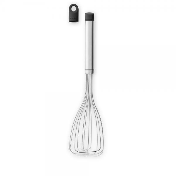 Duża trzepaczka, z której pomocą wymieszasz suche i mokre składniki, a także ubijesz, np. pianę z białek. Wykonana jest ze stali nierdzewnej, rękojeść ze stali matowej, zakończona grafitową końcówką i otworem umożliwiającym powieszenie na relingu. Można ją myć w zmywarce. Seria Accent daje Ci możliwość dopasowania koloru końcówek do wystroju Twojej kuchni. W każdej chwili możesz dokupić czerwone lub miętowe końcówki i odświeżyć swoją kuchnię! Wymiary: Długość: 32,5 cm Szerokość: 7,5 cm Głębokość: 7,5 cm Wysoką jakość potwierdza 5-letnia gwarancja producenta!