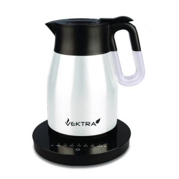 Niezwykły czajnik elektryczny z nowej linii Vektra Plus marki Grunwerg posiada innowacyjną funkcję regulacji temperatury. Przez zastosowanie odpwiedniej temperatury do przygotowywanego gorącego napoju, możemy z niego wydobyć maksimum smaku i aromatu. W innej temperaturze należy zaparzać zieloną herbatę, zioła czy kawę. Na specjalnej podstawie znajdziemy skalę temperatury od 40 do 100 st. C, za pomocą, której możemy wyznaczyć pożądaną temperaturę zagotowania wody oraz która poinformuje nas jaką temperaturę ma woda w czajniku. Ponadto w czajnikach Vektra Plus producent zachował funkcje jego poprzedników. To urządzenie łączy w sobie funkcję czajnika, dzbanka i termosu. Vektra Plus ma budowę dwuściennego stalowego zbiornka, zakręcaną szczelną pokrywę oraz otwór zamykający, aby nalać wodę do kubka musimy przycisnąć,aby go otworzyć. Konstrukcja urządzeń pozwala na zachowanie wysokiej temperatury wody na dłużej, wg testów producenta po 2 godzinach od zagotowania woda ma temp. 80 st. C, wystarczająco aby zaparzyć herbatę, po 4 godzinach 68 st. C, możemy jeszcze zaparzyć kawę. Nie ma, więc konieczności ponownego zagotowywania wody, co stanowi ogromną oszczędność czasu, ale także prądu. Gotując wodę w czajnikach Vektra Plus po raz kolejny temp. wody jest wyższa niż w zwykłych urządzeniach, więc woda zagotowuje się szybciej.Taka budowa sprawia także, że czajnik z zewnątrz się nie nagrzewa, jest dużo cichszy niż inne czajniki elektryczne, a także podczas gotowania wydobywa się z niego mniejsza ilość pary w porównaniu do innych czajników.Przy produkcji czajników Vektra Plus zastosowano grzałki o mniejszej mocy niż w innych urządzeniach tego typu, dzięki, temu są energooszczędne. Czajniki marki Grunwerg, z serii Vektra Plus przy pojemności 1,5 L mają moc 1500-1800W, dla porównania czajniki tej samej mocy innej marki mają moc ponad 2000W!